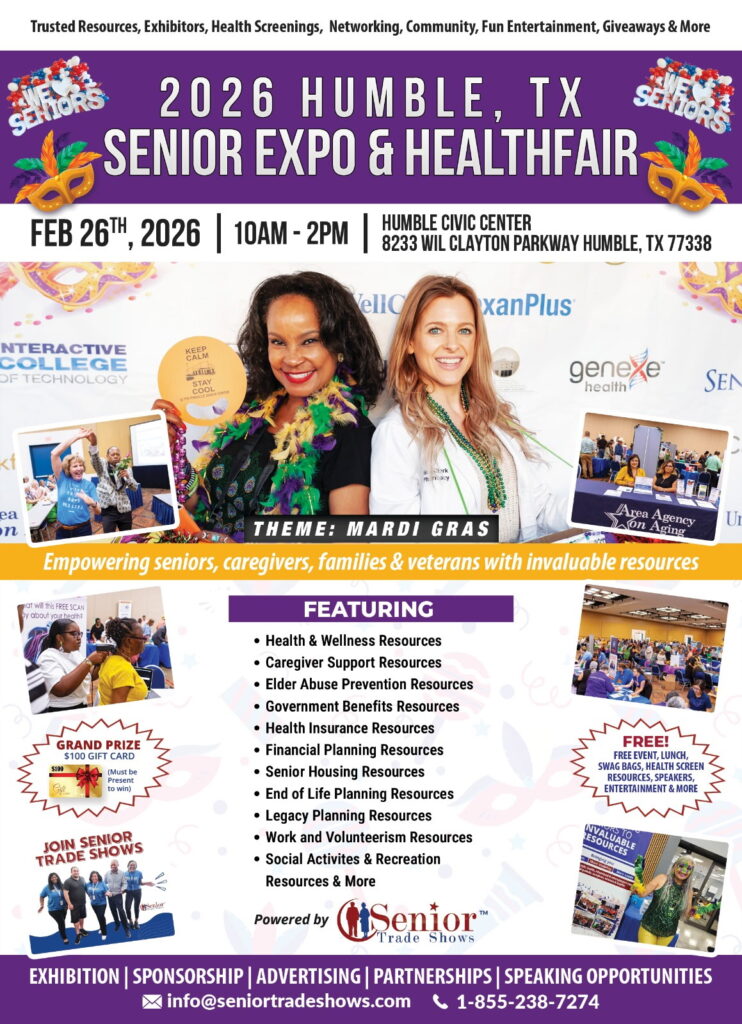 Now on another note, please be sure to save some time in your schedule, so you can attend our 2026 Senior Trade Shows Expos. This year’s expo theme is Mardi Gras! Check out our latest flyer below to save the upcoming dates on your calendar! Just click for more information on registering to attend. In the meantime, we would appreciate you liking us on Facebook.